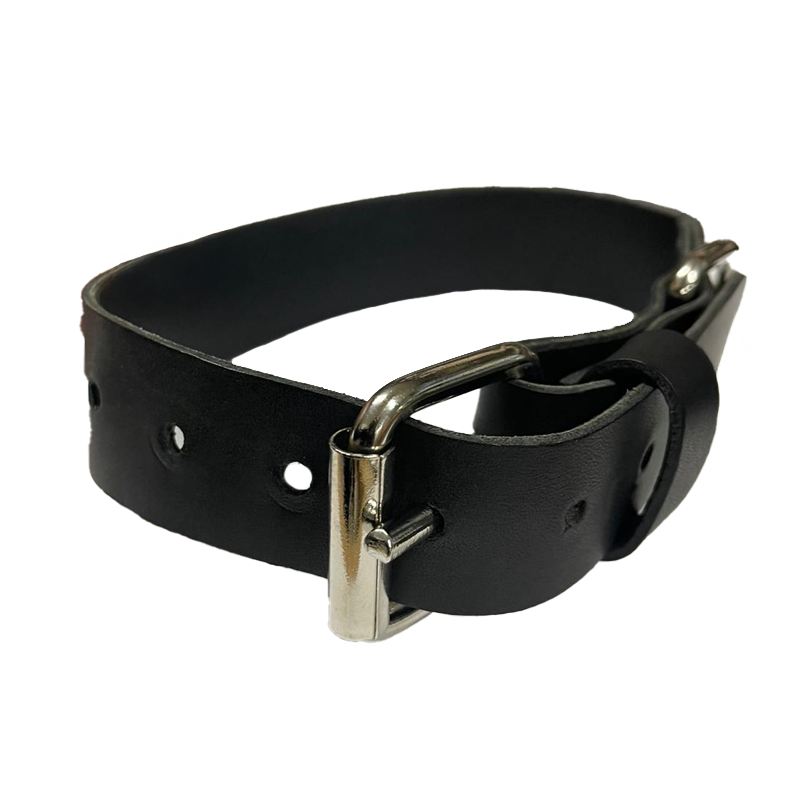 Collare in cuoio regolabile, misura 3,5×50 cm.
